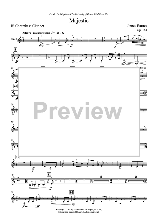 Digital Sheet Music for Majestic - Eb Contra Alto Clarinet / Bb Contra Bass Clarinet by James Barnes scored for Symphonic Band; id:508134