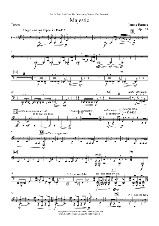 Digital Sheet Music for Majestic - Tubas by James Barnes scored for Symphonic Band; id:508155