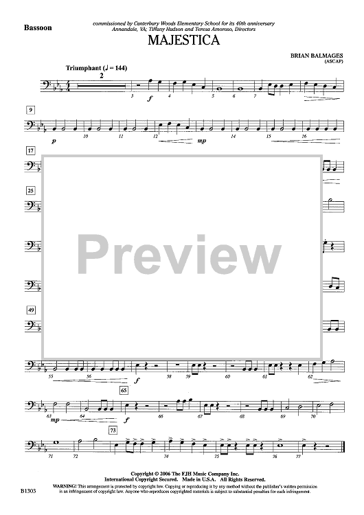 "Majestica - Bassoon" Sheet Music by Brian Balmages