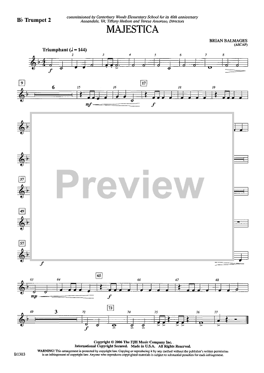 "Majestica - Bb Trumpet 2" Sheet Music by Brian Balmages
