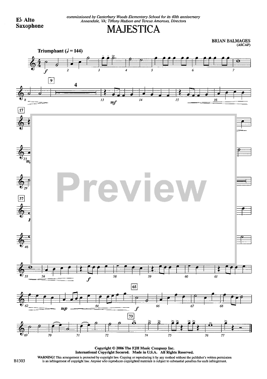 "Majestica - Eb Alto Sax" Sheet Music by Brian Balmages