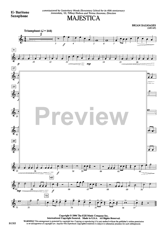 Digital Sheet Music for Majestica - Eb Baritone Sax by Brian Balmages scored for Concert Band; id:442704