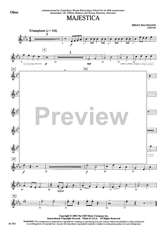 "Majestica - Oboe" Sheet Music by Brian Balmages