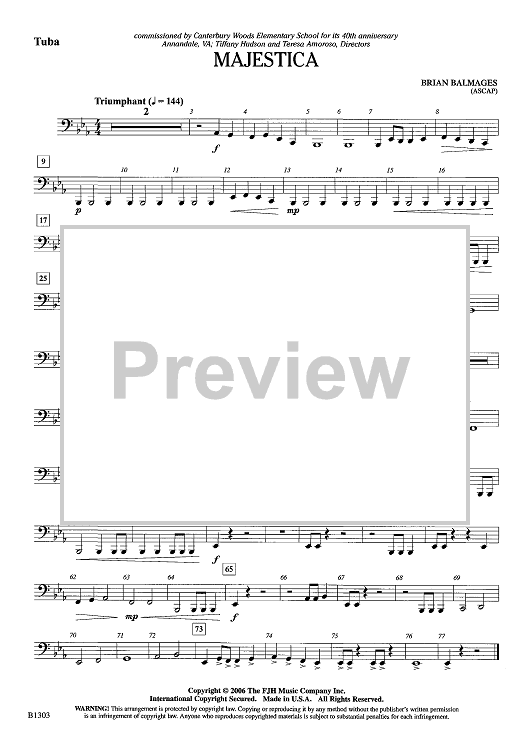 Digital Sheet Music for Majestica - Tuba by Brian Balmages scored for Concert Band; id:442711
