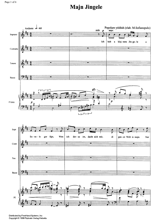 Digital Sheet Music for Majn Jingele by , Marco Sofianopulo, Traditional scored for Choir/Piano; id:328856