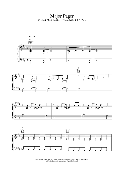 Digital Sheet Music for Major Pager by Space scored for Piano/Vocal/Chords; id:376299