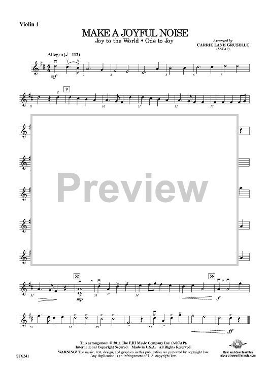 Digital Sheet Music for Make a Joyful Noise - Violin 1 by Traditional, Carrie Lane Gruselle scored for String Orchestra; id:421687
