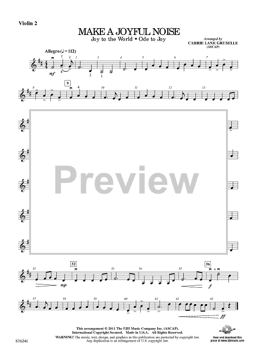 Digital Sheet Music for Make a Joyful Noise - Violin 2 (Viola T.C.) by Traditional, Carrie Lane Gruselle scored for String Orchestra; id:421688