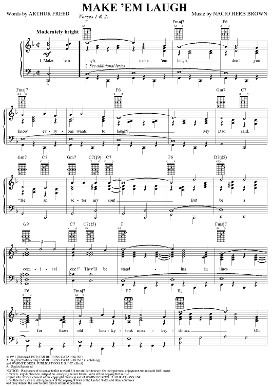 Digital Sheet Music for Make 'em Laugh by Nacio Herb Brown, Arthur Freed scored for Piano/Vocal/Chords; id:274999