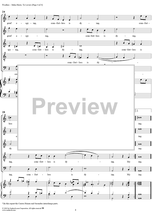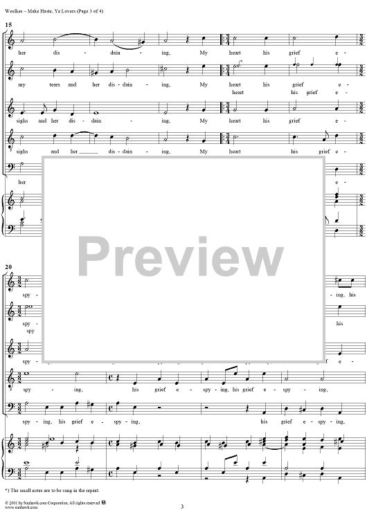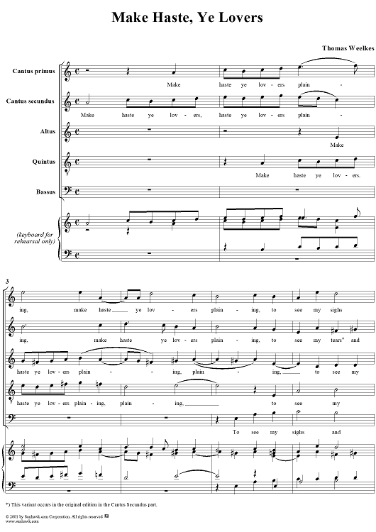 Digital Sheet Music for Make Haste, Ye Lovers by Thomas Weelkes scored for Five-part Mixed Chorus; id:262512