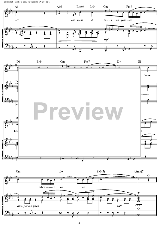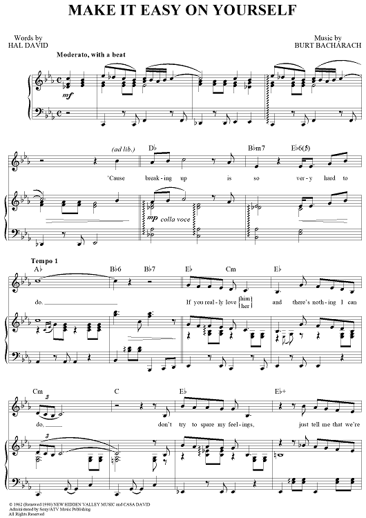 Digital Sheet Music for Make It Easy on Yourself by Hal David, Burt Bacharach, Dionne Warwick, Jerry Butler scored for Piano/Vocal/Chords; id:276304