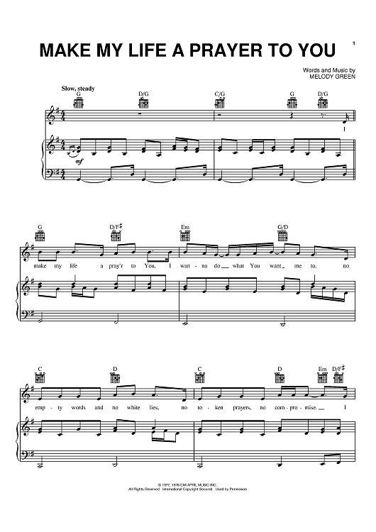 Digital Sheet Music for Make My Life A Prayer To You by Keith Green, Melody Green scored for Piano/Vocal/Chords; id:371132