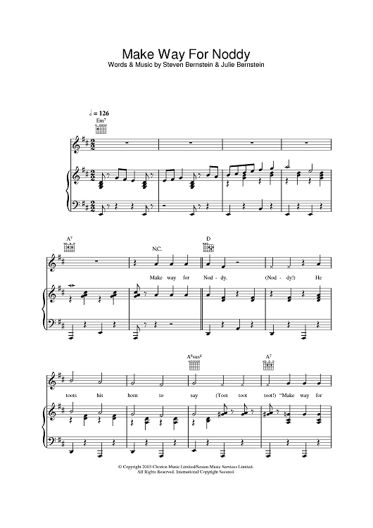 Digital Sheet Music for Make Way For Noddy by Noddy scored for Piano/Vocal/Chords; id:378313