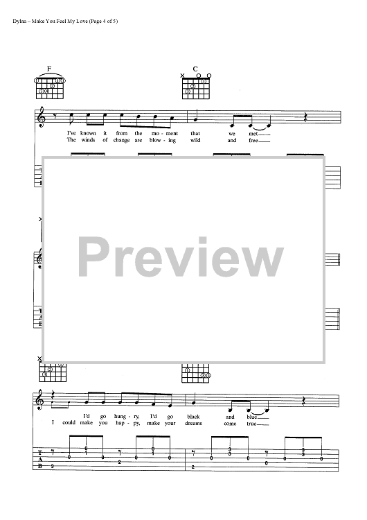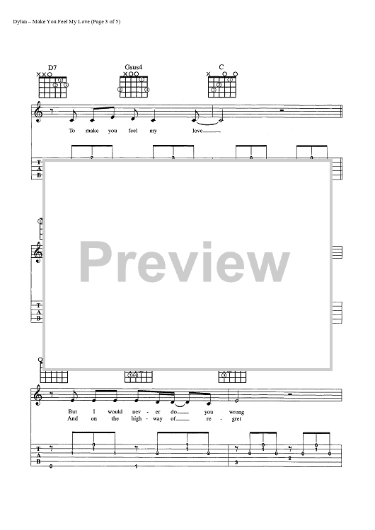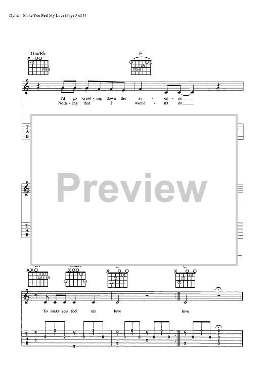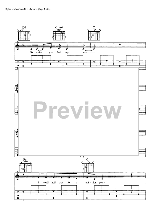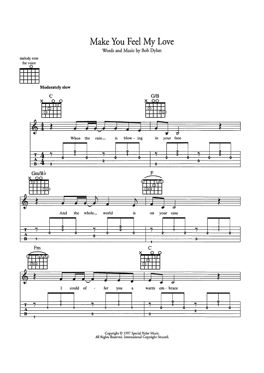 Digital Sheet Music for Make You Feel My Love by Bob Dylan scored for Guitar Tab/Vocal/Chords; id:445445