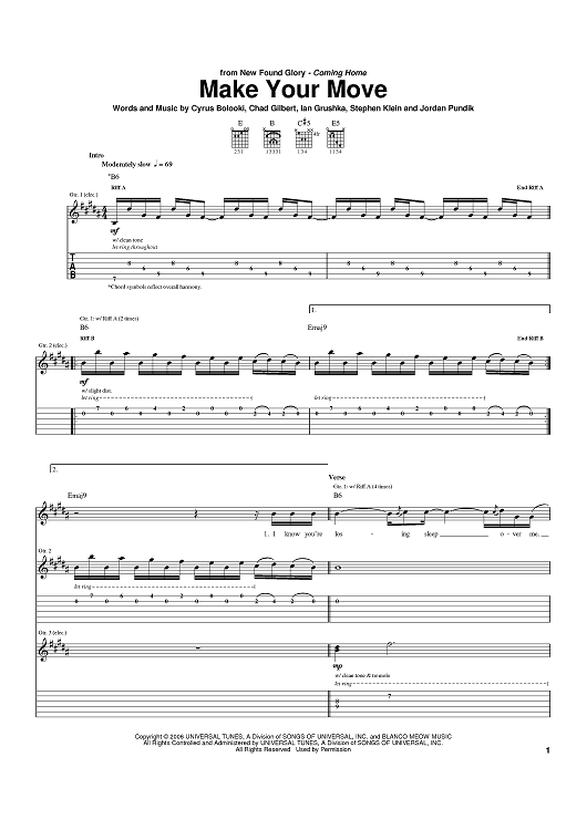 Digital Sheet Music for Make Your Move by New Found Glory, Cyrus Bolooki, Chad Gilbert, Ian Grushka, Steve Klein, Jordan Pundik scored for Guitar Tab; id:397801
