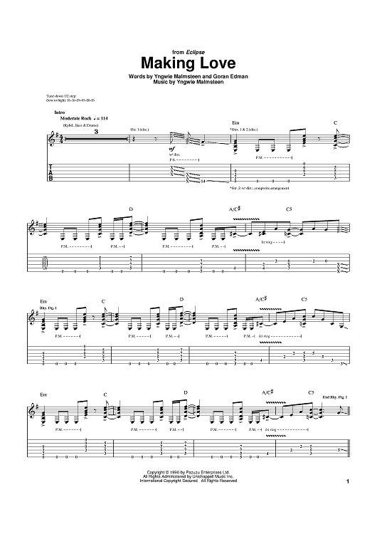 Digital Sheet Music for Making Love by Goran Edman, Yngwie Malmsteen scored for Guitar Tab; id:373370
