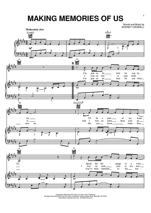 Digital Sheet Music for Making Memories Of Us by Rodney Crowell, Keith Urban scored for Piano/Vocal/Chords; id:386003