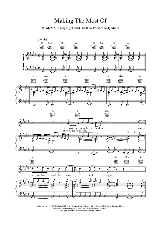 Digital Sheet Music for Making The Most Of by Nigel Clark, Andy Miller, Mathew Priest, Stereophonics scored for Piano/Vocal/Chords; id:380047