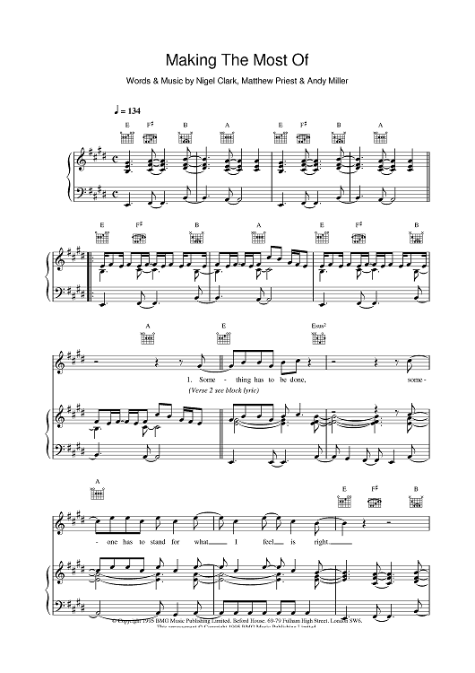 Digital Sheet Music for Making The Most Of by Nigel Clark, Dodgy, Andy Miller, Mathew Priest scored for Piano/Vocal/Chords; id:380048