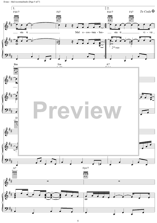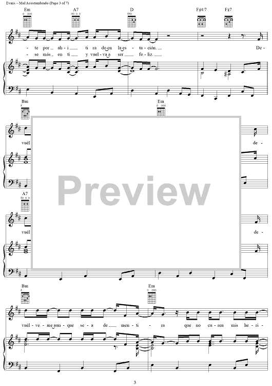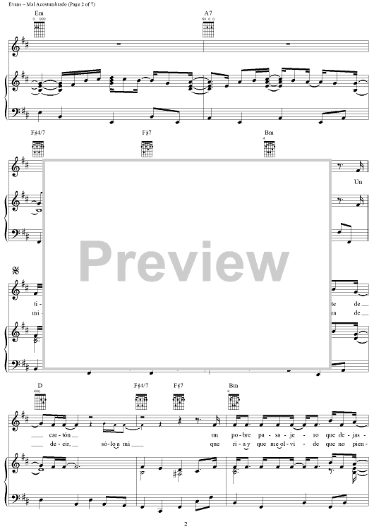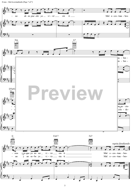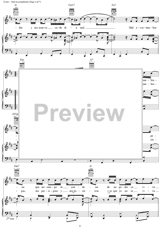 Digital Sheet Music for Mal Acostumbrado (Mal Acostumado) by Julio Iglesias, Estéfano, Meg Evans, Rai Araujo scored for Piano/Vocal/Chords; id:284424