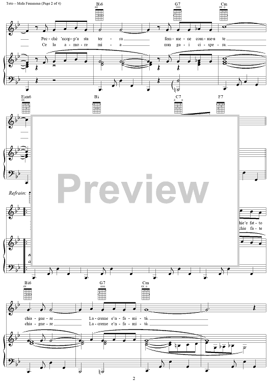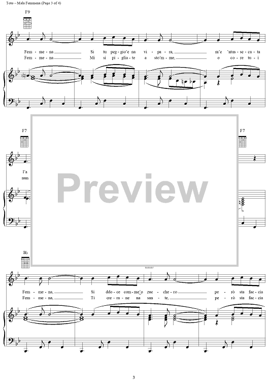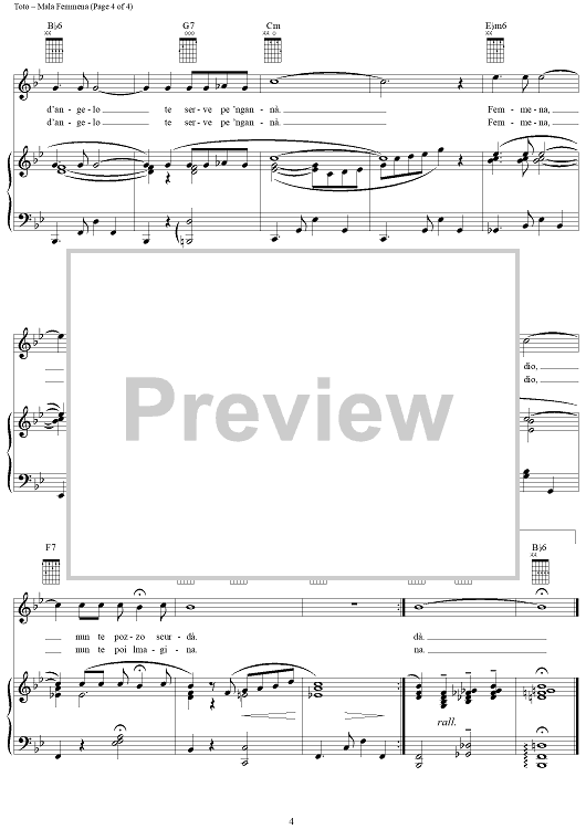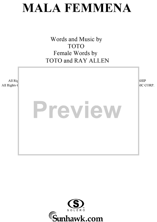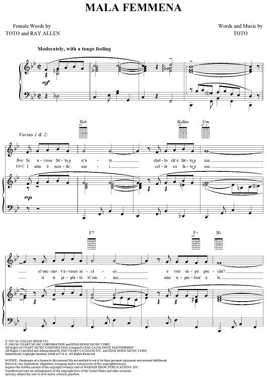 Digital Sheet Music for Mala Femmena by Toto, Connie Francis, Ray Allen, Jimmy Roselli scored for Piano/Vocal/Chords; id:219129