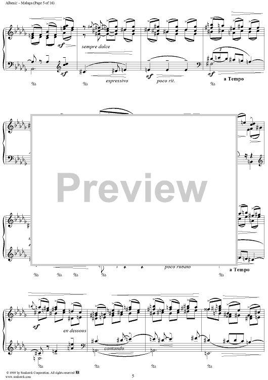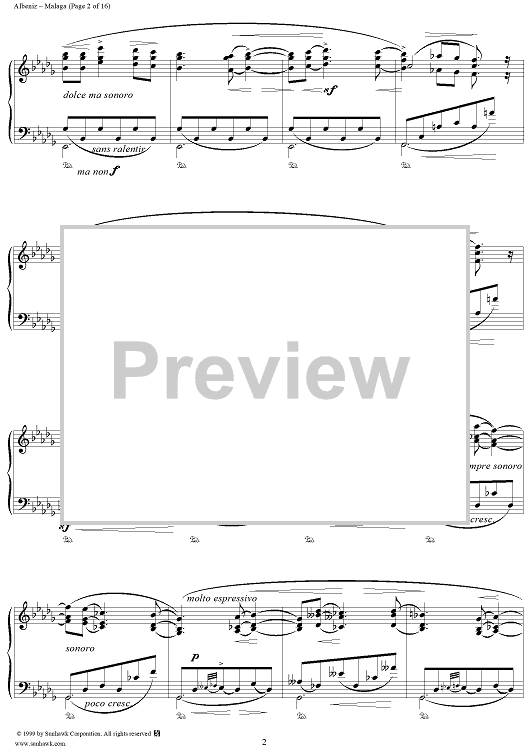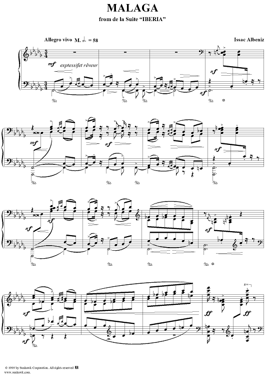 Digital Sheet Music for Malaga by Isaac Albéniz scored for Piano Solo; id:262279