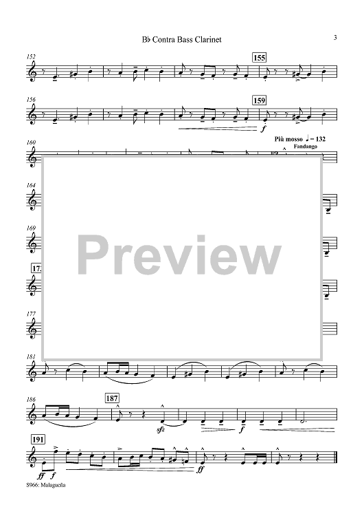 Digital Sheet Music for Malaguena: from the Spanish Suite ANDALUCIA - Bb Contra Bass Clarinet by Ernesto Lecuona, James Barnes scored for Concert Band; id:504697