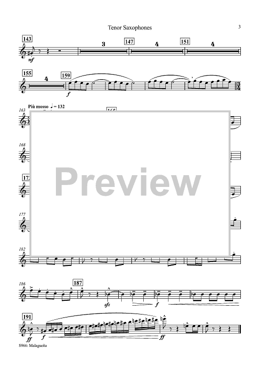 Digital Sheet Music for Malaguena: from the Spanish Suite ANDALUCIA - Bb Tenor Sax by Ernesto Lecuona, James Barnes scored for Concert Band; id:504702