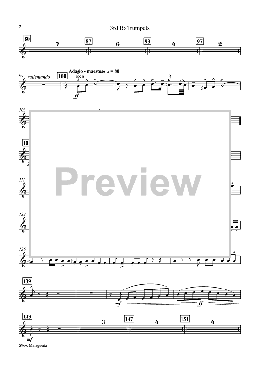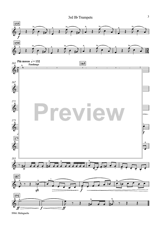 Digital Sheet Music for Malaguena: from the Spanish Suite ANDALUCIA - Bb Trumpet 3 by Ernesto Lecuona, James Barnes scored for Concert Band; id:504706