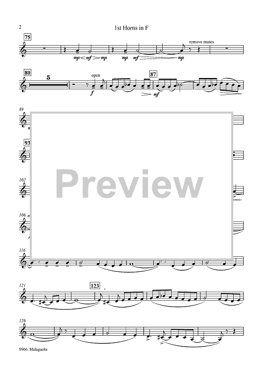 Digital Sheet Music for Malaguena: from the Spanish Suite ANDALUCIA - F Horn 1 by Ernesto Lecuona, James Barnes scored for Concert Band; id:504708