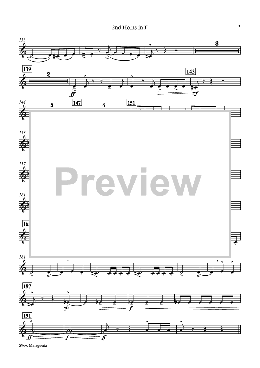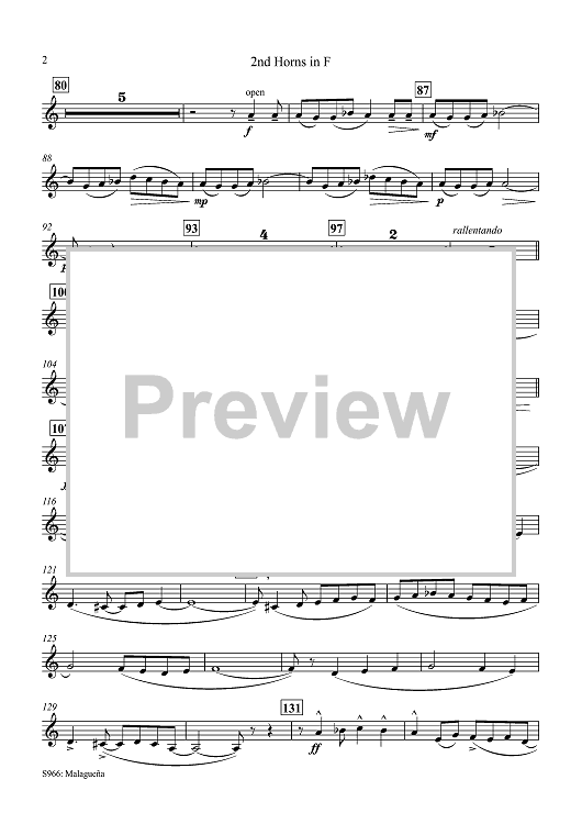 Digital Sheet Music for Malaguena: from the Spanish Suite ANDALUCIA - F Horn 2 by Ernesto Lecuona, James Barnes scored for Concert Band; id:504709