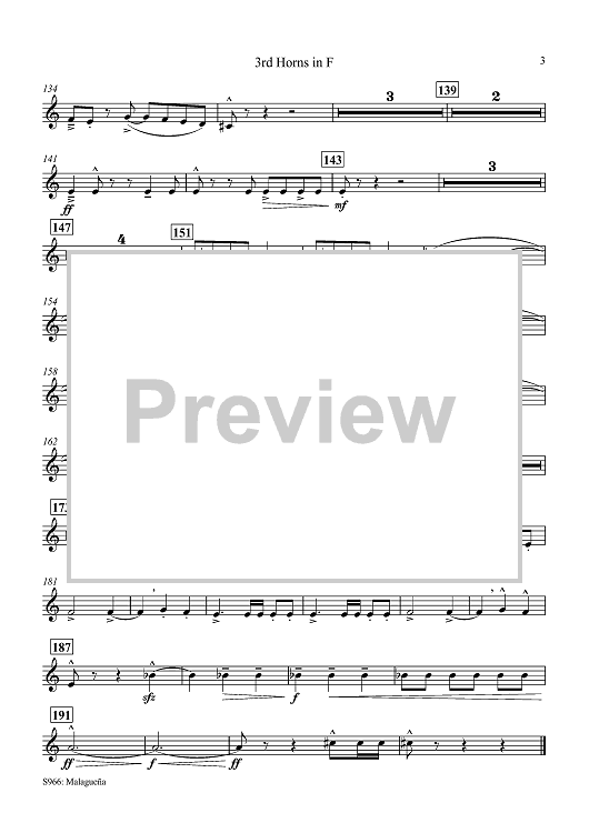 Digital Sheet Music for Malaguena: from the Spanish Suite ANDALUCIA - F Horn 3 by Ernesto Lecuona, James Barnes scored for Concert Band; id:504710