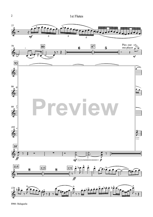Digital Sheet Music for Malaguena: from the Spanish Suite ANDALUCIA - Flute 1 by Ernesto Lecuona, James Barnes scored for Concert Band; id:504687