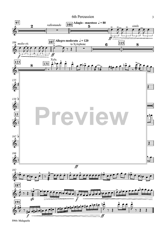 Digital Sheet Music for Malaguena: from the Spanish Suite ANDALUCIA - Percussion 6 by Ernesto Lecuona, James Barnes scored for Concert Band; id:504728