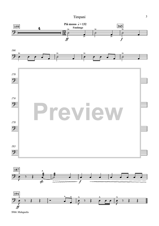 "Malaguena: from the Spanish Suite ANDALUCIA - Timpani" Sheet Music by Ernesto Lecuona