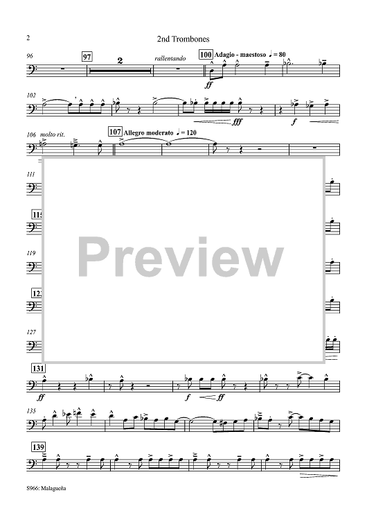 Digital Sheet Music for Malaguena: from the Spanish Suite ANDALUCIA - Trombone 2 by Ernesto Lecuona, James Barnes scored for Concert Band; id:504713