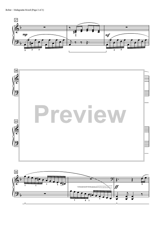 "Malagueña Mood (for the left hand)" Sheet Music by Melody Bober