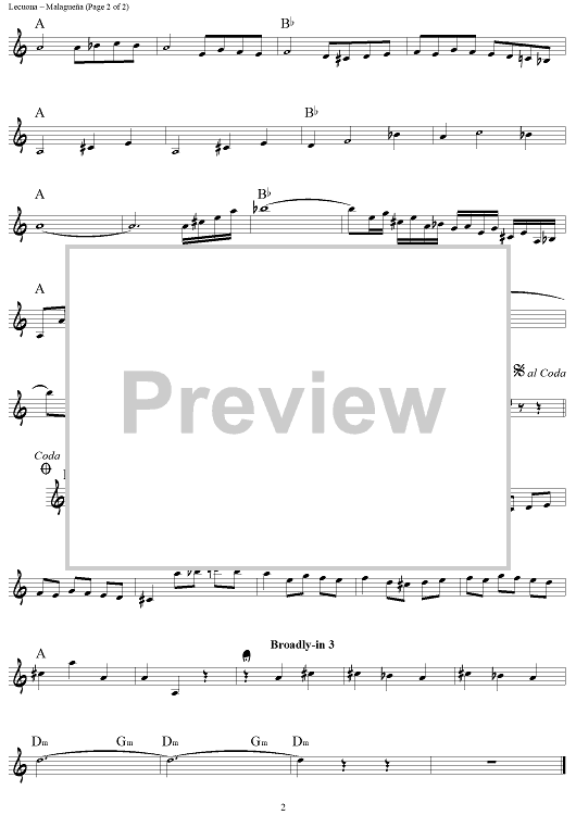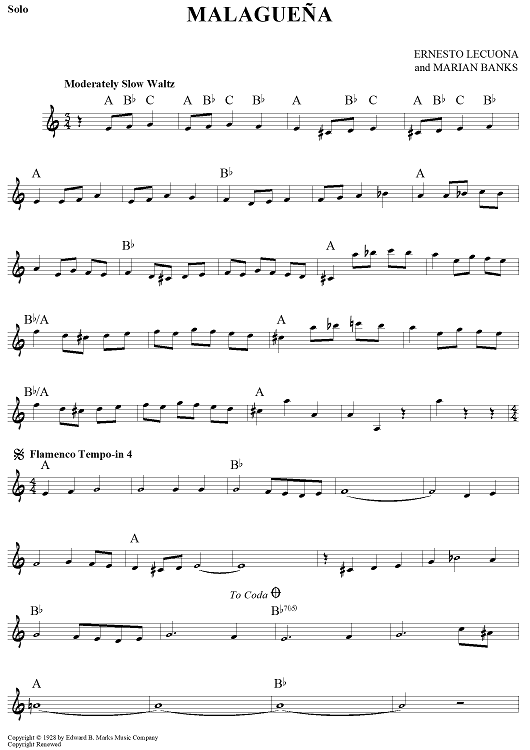 Digital Sheet Music for Malagueña by Ernesto Lecuona, Marian Banks scored for Lead Sheet; id:452086