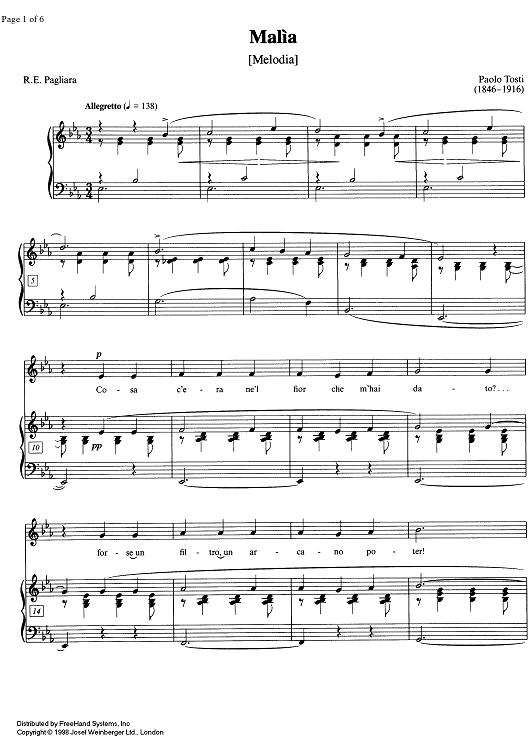 Digital Sheet Music for Malia by Francesco Paolo Tosti scored for Soprano/Piano; id:332576
