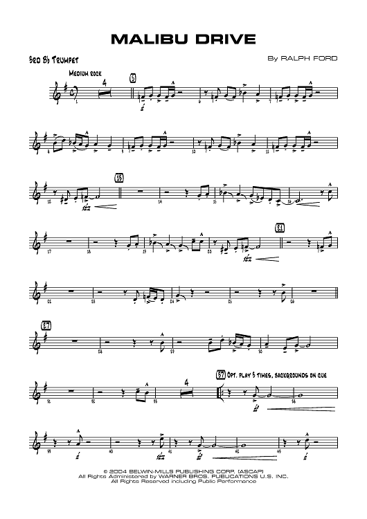 "Malibu Drive - B-flat Trumpet 3" Sheet Music by Ralph Ford