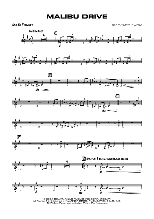 "Malibu Drive - B-flat Trumpet 4" Sheet Music by Ralph Ford