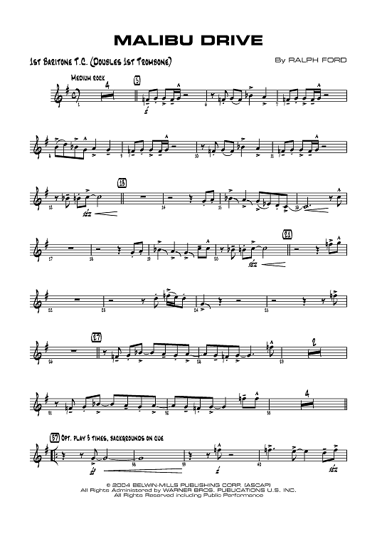 Digital Sheet Music for Malibu Drive - Baritone 1 TC by Ralph Ford scored for Jazz Ensemble; id:358869