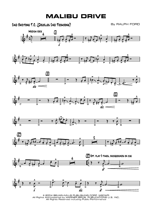 Digital Sheet Music for Malibu Drive - Baritone 2 TC by Ralph Ford scored for Jazz Ensemble; id:358870