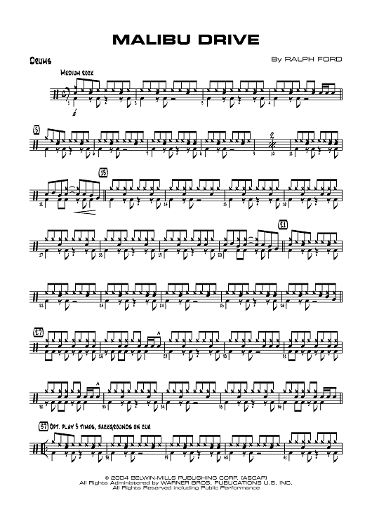 "Malibu Drive - Drums" Sheet Music by Ralph Ford