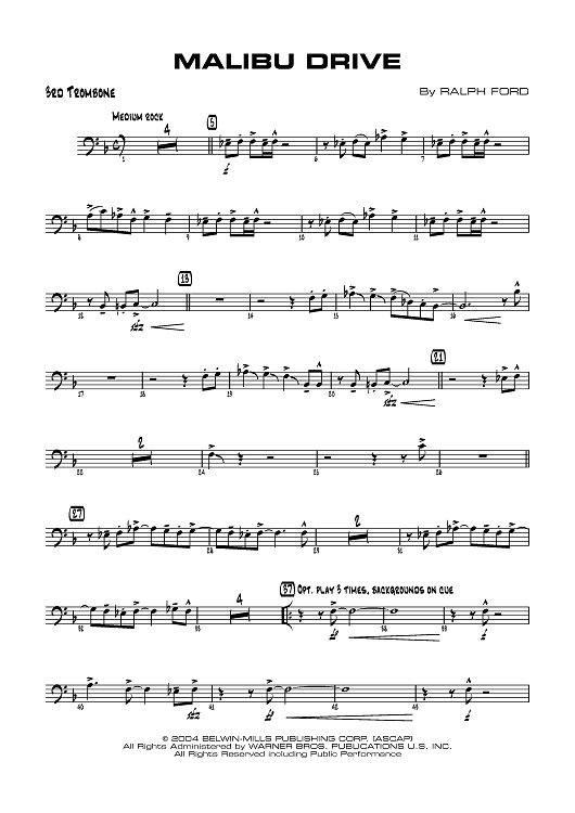 Digital Sheet Music for Malibu Drive - Trombone 3 by Ralph Ford scored for Jazz Ensemble; id:358866
