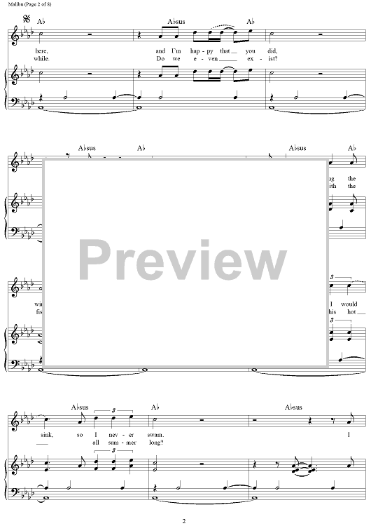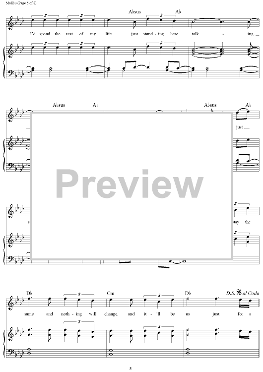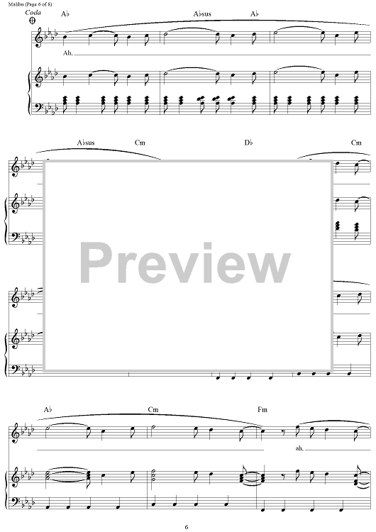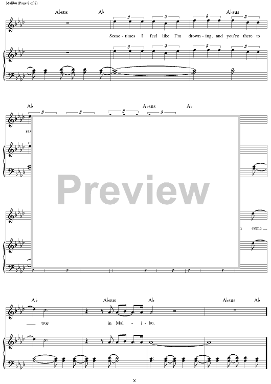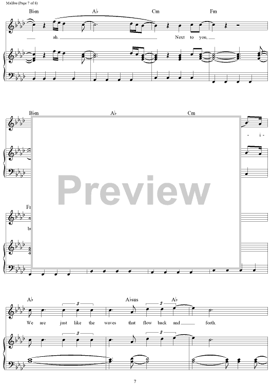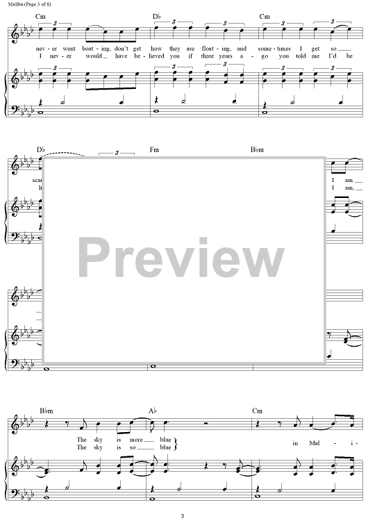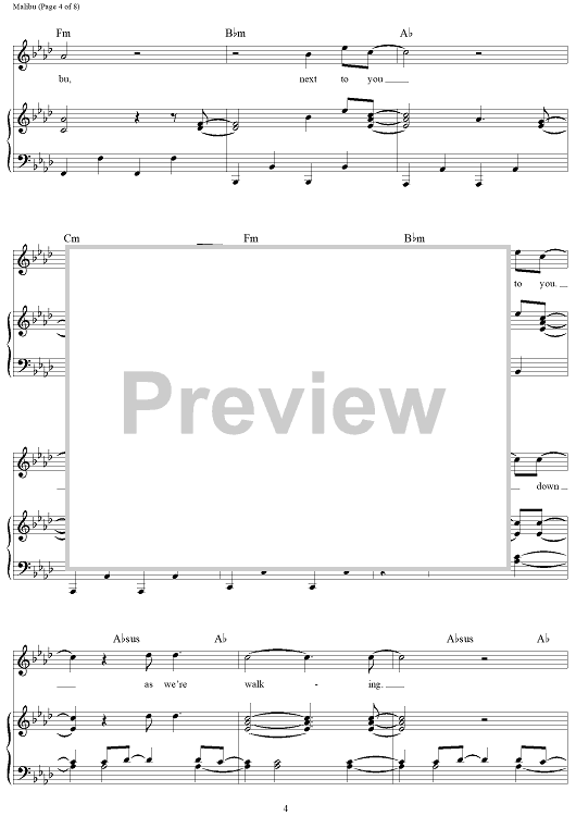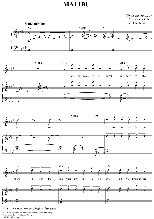 Digital Sheet Music for Malibu by Miley Cyrus, Oren Yoel scored for Piano/Vocal/Chords; id:464794