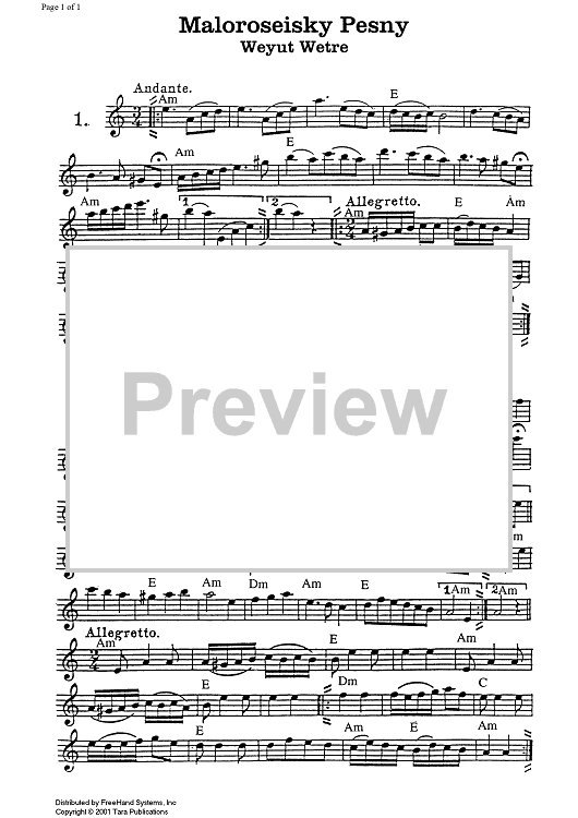 "Maloroseisky Pesny / Sonce Nizenko" Sheet Music by Traditional