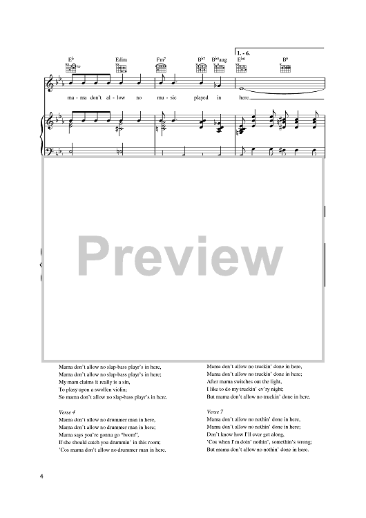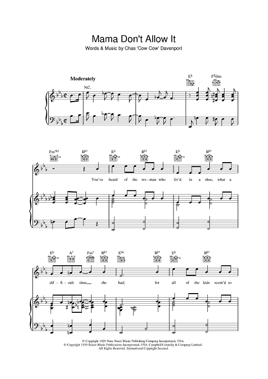 Digital Sheet Music for Mama Don't Allow It by Charles 'Cow Cow' Davenport scored for Piano/Vocal/Chords; id:393435