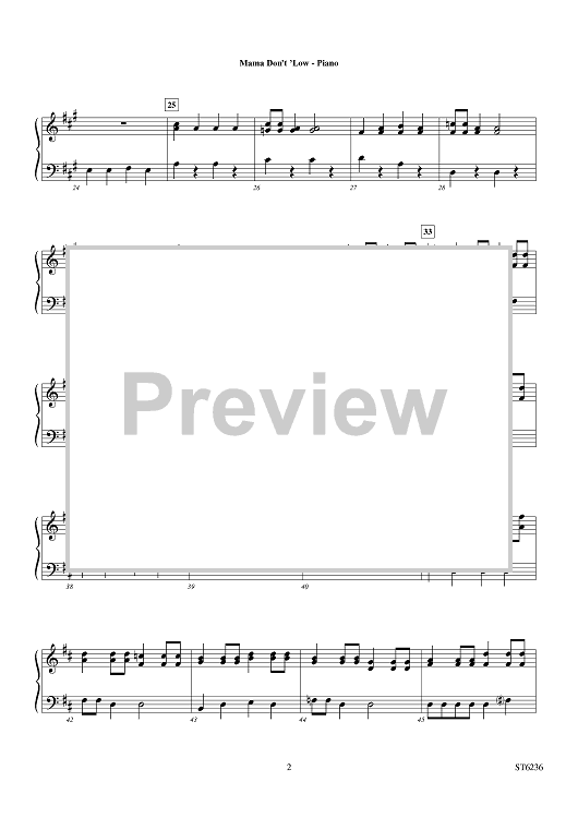 "Mama Don’t ’Low (No Fiddle Playin’ ’Round Here) - Piano" Sheet Music by Traditional