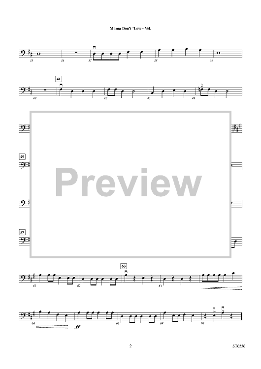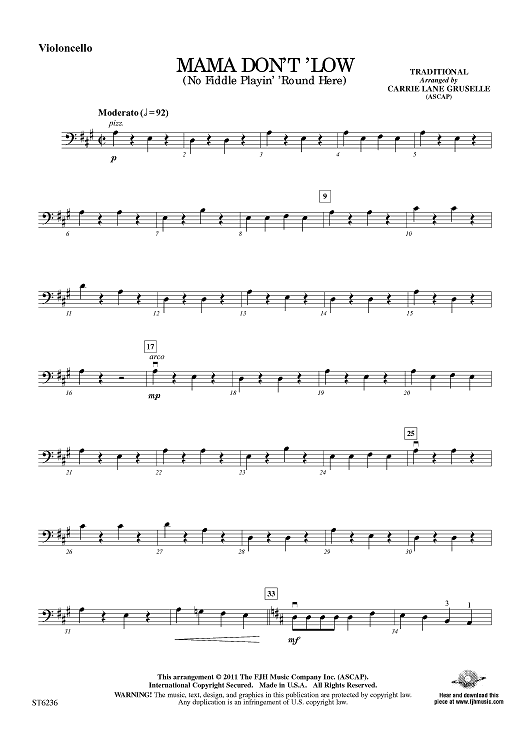 Digital Sheet Music for Mama Don’t ’Low (No Fiddle Playin’ ’Round Here) - Violoncello by Traditional, Carrie Lane Gruselle scored for String Orchestra; id:421682